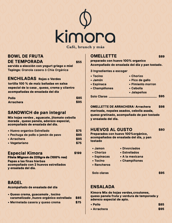 En Kimora café trabajamos cada día para ofrecer buen café, brunch y comida con calidad, acompañados de un ambiente agradable y un servicio cercano.